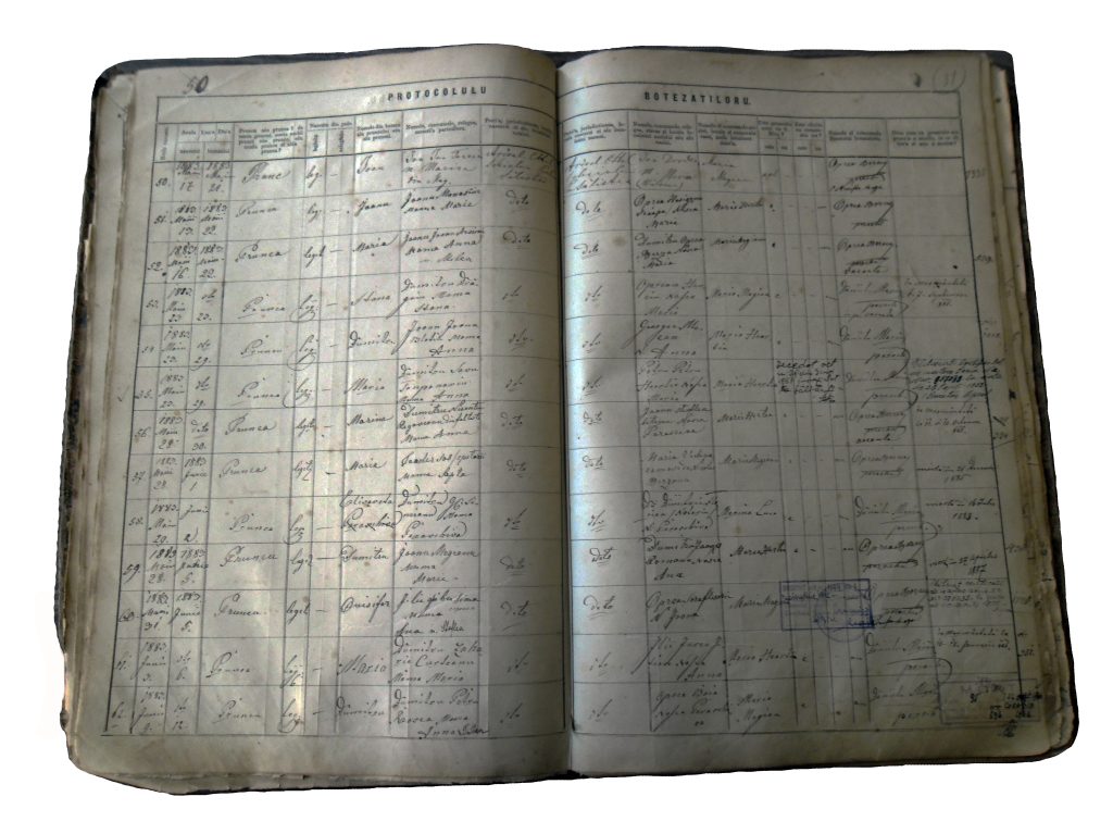 Registrul de stare civilă în care se consemnează botezul lui Onisifor Ghibu (poziția 60), Protocolul botezaților Bisericei Gr. Or. din Comuna Bisericească Săliște începând dela 1879 Maiu 17 până la 25 Iuniu 1887, Serviciul Județean Sibiu al Arhivelor Naționale, Colecția Registre de Stare Civilă, Nr. Inv. 378, Cota 23, f. 50v-51r (date și fotografii puse la dispoziție în noiembrie 2023 de Cosmin-Crăciun Cruciat, căruia îi adresăm mulțumiri).